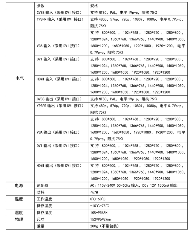MK-MAV-MAV是一款功能強大的多格式信號轉換器支持任意高清、標清、模擬和數字信號的相互轉換功能,配合對應的轉換頭可支持CVBS/DVI/VGA/Ypbpr/HDMI信號之間的相互轉換。信號輸入輸出均采用DVI-I接口,模擬音頻采用3.5mm音頻接口輸入輸出。此轉換器采用了信號轉換技術,支持去隔行技術,支持3D降噪,支持視音頻的同步切換,支持即插即用功能,不需任何操作,支持輸入輸出的信號檢測,支持各種輸入接口對應格式分辨率,支持圖像的縮放,支持色彩、亮度、對比度、銳度等圖像調節,支持圖像鏡像等多種功能。